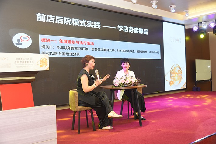 会议期间,芮旭涛副总介绍了“云连锁招商”“数字化转型”和“轻创业孵化”三大战略路径,这背后是总部七大赋能团队的专业分工,是“三阶段九步骤单店赋能模式”的实战方法论,更是对“基于成交订单、信息透明、公平合理利益分配”原则的坚守。琪雅连锁公司董事张冠群女士则向全国A经理描绘了琪雅功能性项目的战略定位,以及如何构建"前店后院+家居护理"的生态闭环,解决“到店率下滑、客群老龄化、年轻需求断层”的行业三大痛点。