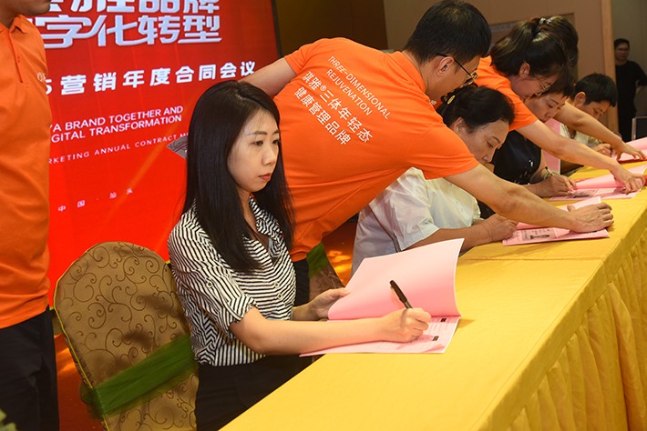 最后,张冠群女士代表琪雅与全国经理A经理签订了战略契约,在琪雅品牌创立35周年之际,以这场会议为起点,以专业为笔、以数字化为墨,携手万千伙伴共建“万店连锁”的宏伟蓝图,共同书写属于中国美业的黄金时代!